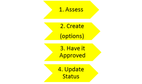 The status of the change is noted. If it is rejected, the reason is listed. Once a change is approved, it can then go and be implemented, noting that the implementation may be more complicated if the change is of greater magnitude (see diagram 3a above).