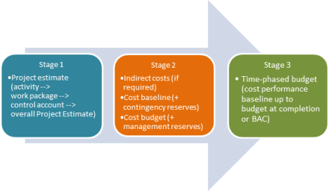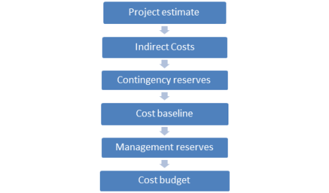 | 7.2 | Determine Budget | Stage 1: Sums up the estimated costs to get the project estimate. Stage 2: Reserves are added to get the cost baseline and the cost budget. Stage 3: Periodic funding requirements are taken into account to get the final time-phased budget called the cost performance baseline. |