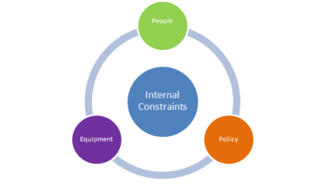 There are three types of internal constraints. The way the equipment is used may be limiting output, the training and/or mindset of people could be preventing the system from producing more, or it could be the policy