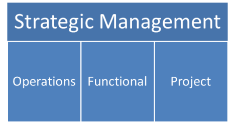 The high-level (C-level) management is the group that figures out and implements the overall business strategy for an organization. The levels of management under them are the functional managers who take care of specific business units (accounting, human resources, IT, etc.), and then there are the operations managers and project managers, who take of the day-to-day operations and special projects, respectively, that the organization engages in. (Under “project management”, we are conceptually including the levels of projects/programs/portfolios.)
