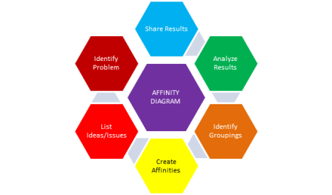 | 4. | Identify Groupings | Label each group of similar notes or cards with a label for each Affinity group. These could be aspects of the problem under consideration. Prioritize these problems that have been identified. |